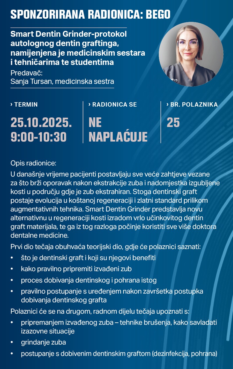 Za 11. Kongres Hrvatskog društva za oralnu kirurgiju s međunarodnim sudjelovanjem, te 17. Kongres Hrvatskog društva za maksilofacijalnu, plastičnu i rekonstrukcijsku kirurgiju glave i vrata s međunarodnim sudjelovanjem.